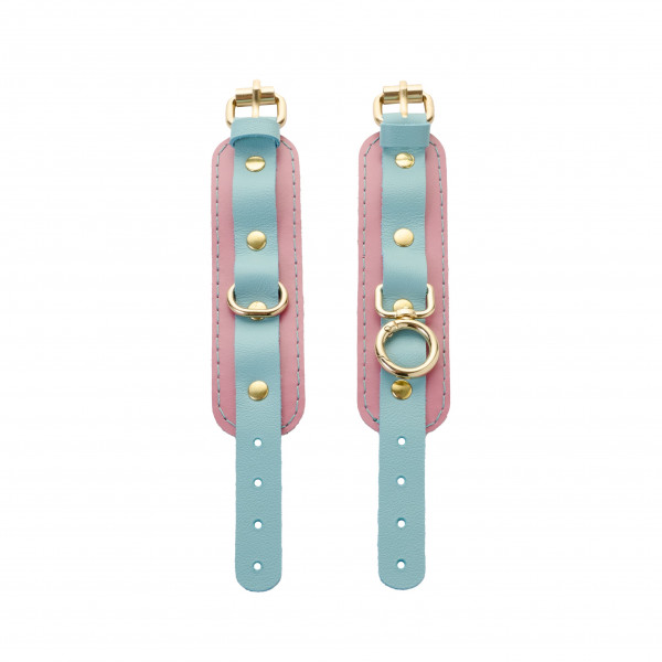 Наручники из коллекции "Crazy Handmade" в потрясающем сочетании цветов - розовая кожа и кожа цвета тиффани - это, отличный аксессуар для самой надежной фиксации!